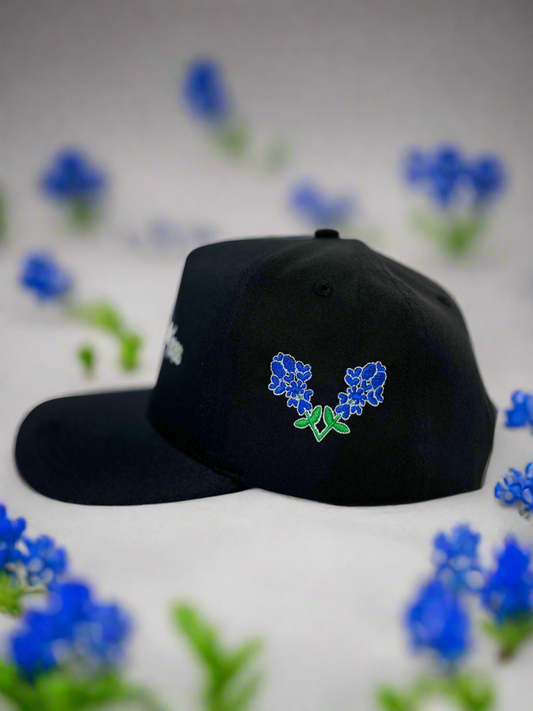 Somewhere In Texas Black (Bluebonnet Collection) Baseball Cap with Logo on side